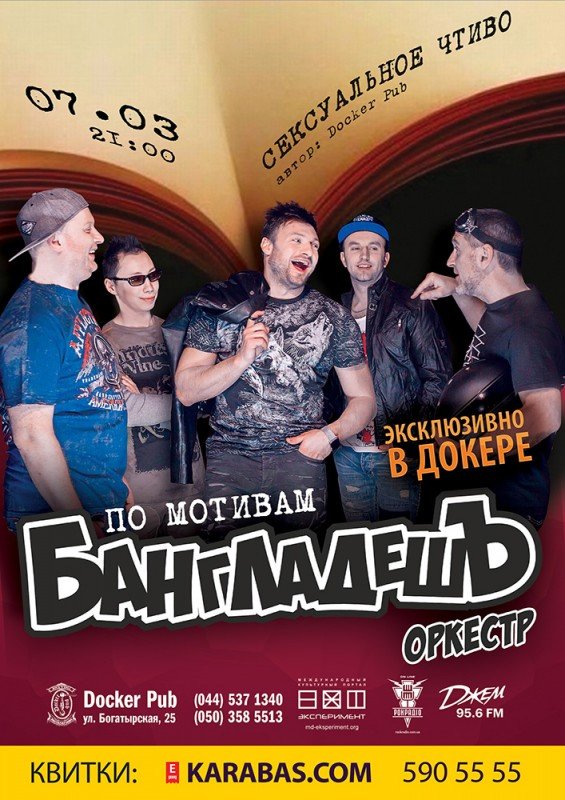 Ура, свершилось! Докер паб подписал эксклюзивное соглашение с группой БангладешЪ на проведение самых безбашенных вечеринок в Киеве. Теперь БангладешЪ являются уникальными резидентами Докер паба на ближайший год, чьи концерты будут поддерживаться тематическими пати с ведущим.