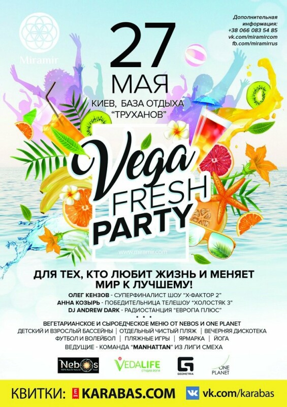 Все на пляж! Приглашаем отпраздновать День Киева в отличной компании и без алкоголя! Освежись на трезвой пляжной вечеринке Vega Fresh Party от Мирамир!