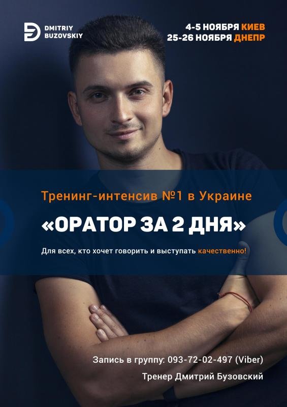 "ОРАТОР ЗА 2 ДНЯ" - это НЕ лекция, НЕ мастер-класс, НЕ семинар!Это самый результативный ораторский ИНТЕНСИВ в Украине по отзывам учеников!