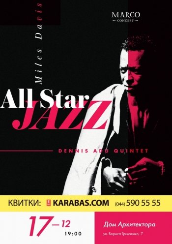 В рамках новой программы «All Star Jazz» талантливые украинские коллективы исполняют культовые джазовые произведения. 17 декабря Dennis Adu Quintet сыграет известные композиции джазового трубача Майлза Дэвиса.