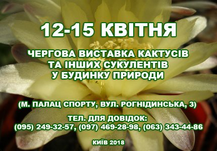Приглашаем всех любителей растений и коллег по увлечению на первую весеннюю выставку кактусов и других суккулентных растений, которая состоится при Киевском городском Доме природы.