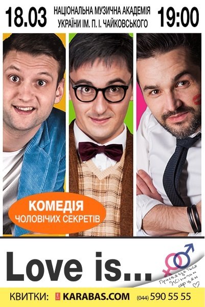 Спектакль «Love is ....» - это сочный коктейль откровенных эмоций, мужской взгляд на женщин, во всех его абсурдных и смешных проявлениях, драма под маской комедии, потому что только так мужчины могут говорить откровенно о своих чувствах.