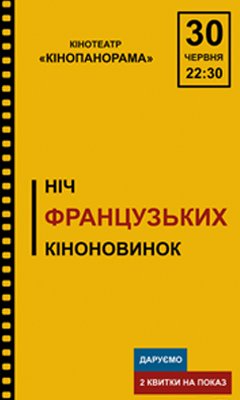Билеты в кассе кинотеатра "Кинопанорама" и онлайн: https://concert.ua/ru/eventpage/nich-francuzkogo-kino