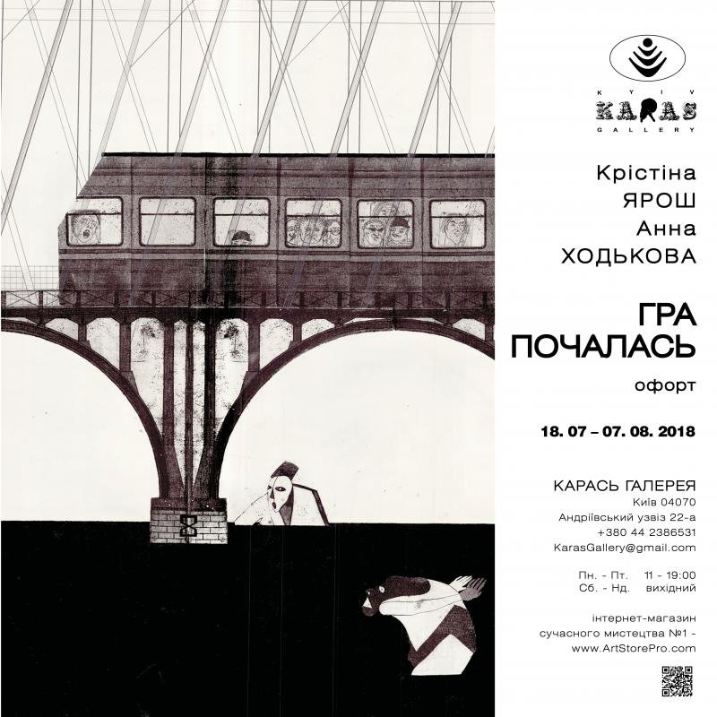 «Карась Галерея» представляет новый проект молодых художниц Кристины Ярош и Анны Ходьковои «Игра началась». Автора известны своими интересными и виртуозно выполненными офортами, которые неоднократно принимали участие как в персональных проектах и крупных фестивалях, так и в больших групповых выставках. Сейчас темой их произведений стали детские ритуалы урбанистических игр.