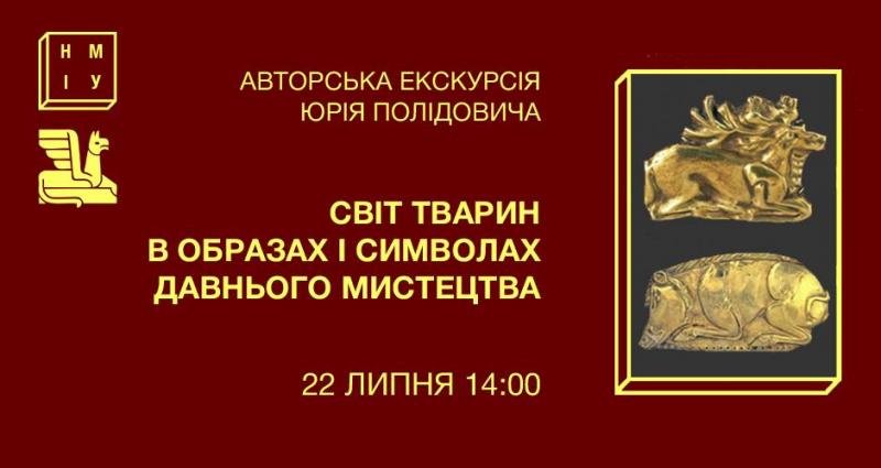 Начало авторской экскурсии "Мир животных в образах и символах древнего искусства"– в воскресенье, 22 июля, в 14:00 по адресу: Музей исторических драгоценностей Украины (филиал НМІУ), вул. Лаврская, 9, корпус 12 (территория Киево-Печерской лавры). Вход в Лавру – через главные врата.