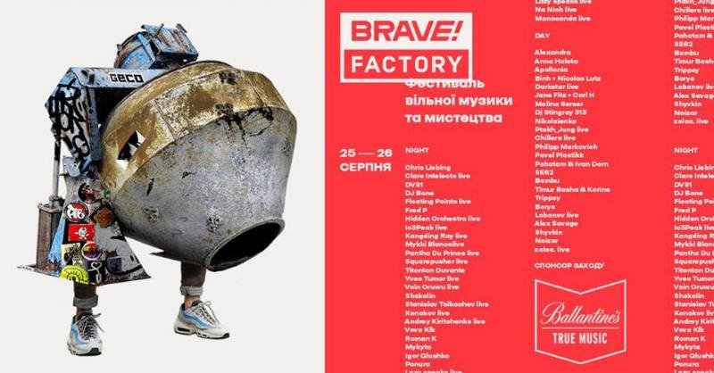 Brave! Factory - фестиваль свободной музыки и искусства, возведенный энтузиастами и фанатами своего дела на территории действующей фабрики. Где каждый от гостя до организатора, от артиста до работника той самой фабрики является полноценным участником.