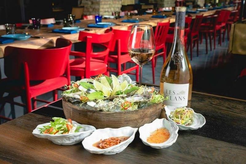 Устриці Special David Herve, La Perle Noir, Imperiale Breul та інші подаємо з рибно-лаймовим соусом та соусом самбал. А також з сальсою із манго, дайкону, огірком та перцем чилі.