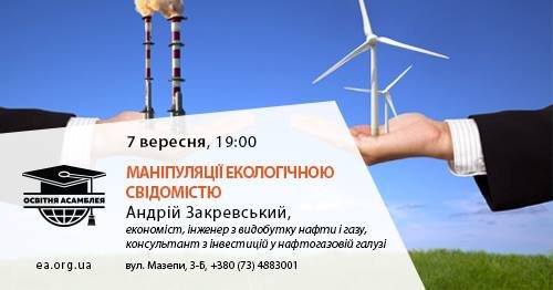 Чтобы уберечься от манипуляций экологическим сознанием, глубже разобраться в экологической тематике в энергетической сфере, приглашаем 7 сентября в 19:00 на лекцию Андрея Закревского, экологического активиста, инженера по добыче нефти и газа, эксперта энергетической отрасли.