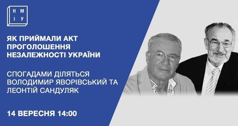 Воспоминаниями об одном из самых важных дней в нашей истории поделятся: соавтор Акта независимости, депутат Верховной Рады 1-го созыва, дипломат, доктор медицинских наук, профессор Леонтий Иванович Сандуляк и писатель, политический деятель, депутат Верховной Рады пяти созывов, член Президиума Верховного Совета в 1991 году - Владимир Александрович Яворивский.