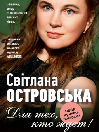 «Для тех, кто ждет» — это новая программа Светланы Островской, автора и исполнительницы собственных песен, поэтессы, композитора, главного редактора женского журнала WELLNESS.