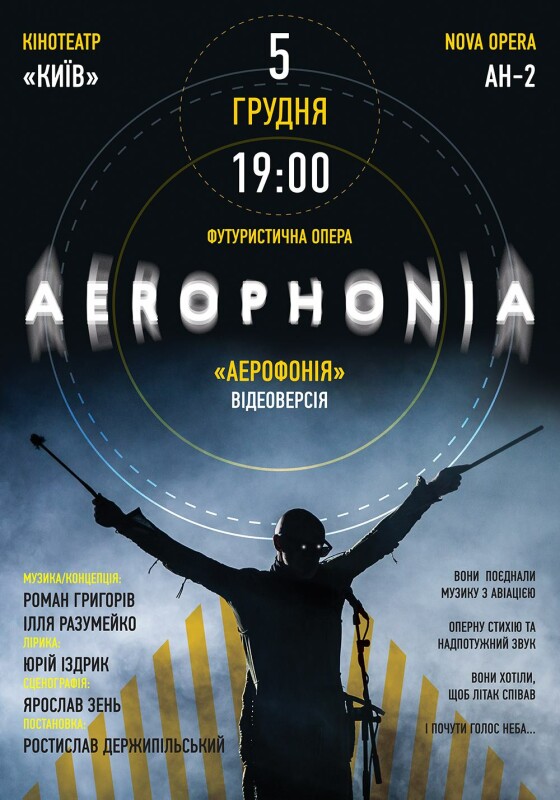 Центральный музыкальный инструмент - легендарный самолет АН-2 стал одновременно главным элементом декораций, на фоне которых артисты NOVA OPERA создали постдраматичну оперу, соединив сонорику авиа-турбины с грегорианскому хоралом, монгольских колыбельными и трип-хоповый ритмами.