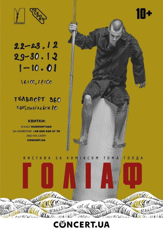 Этой зимой независимый театр "Мизантроп" совместно с TELEPORT360 представляют премьеру спектакля "Голиаф", которая станет первой в Украине постановкой на основе комикса - графического романа всемирно известного иллюстратора Тома Голда.