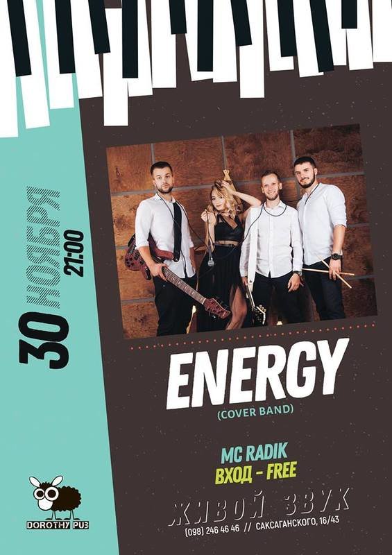 Яркие, молодые и музыкальные Energy Cover Band готовы радовать новыми хитами, которые вы знаете и хотите услышать.
