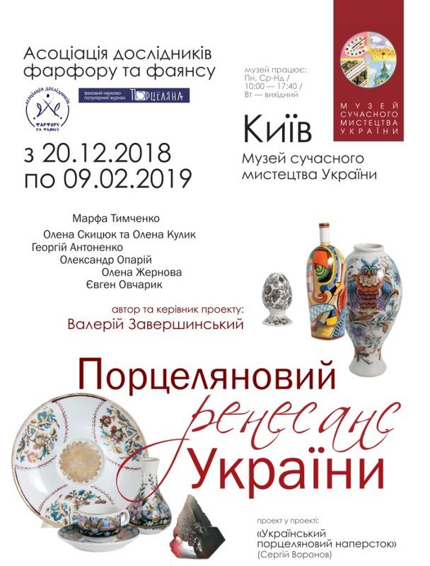 20 декабря в 18-00 в Музее современного искусства Украины состоится открытие выставки «Фарфоровый ренессанс Украины».