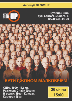 Новое место работы Крейга - весьма странное, оно находится на 7½ этаже и там нельзя выпрямиться в полный рост. Зато за одним из шкафов есть маленькая дверца, ведущая не куда-нибудь, а непосредственно в тело известного актера Джона Малковича. Крейг и его предприимчивый коллега Максин (Кэтрин Кинер) организуют предприятие всего за 200 $ каждый желающий может оказаться на 15 минут в теле самого Малковича. Но Крейг влюбляется в яркую и независимую Максин, столь непохожую на его жену, а та не обращает на него никакого внимания.