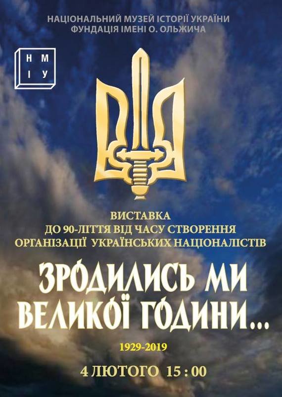 4 февраля в Национальном музее истории Украины состоится открытие выставки к 90-летию создания Организации Украинских Националистов «Родились мы большого времени...» . ОУН была создана 3 февраля 1929 в Вене. От основания организации ее главной целью было установление и построение самостоятельного Украинского государства.