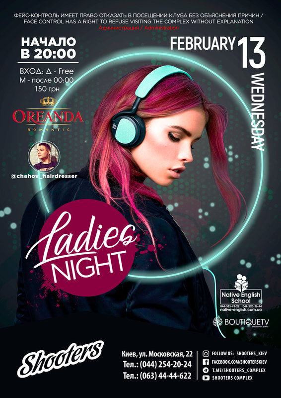 Девчули, этеншен! Пора готовиться к #ЛедисНайт! В Shooters Kiev будет как всегда танцевально и коктейльно.