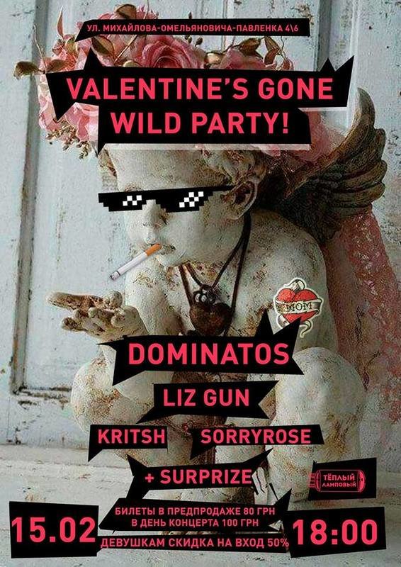 Киевская банда разбойников-романтиков DOMINATOS и АНК Kiev Kills приглашают вас на самый вкусный движ в честь дня влюбленных! Не пропустите этот ништяк! Для вас будут тусить на сцене: