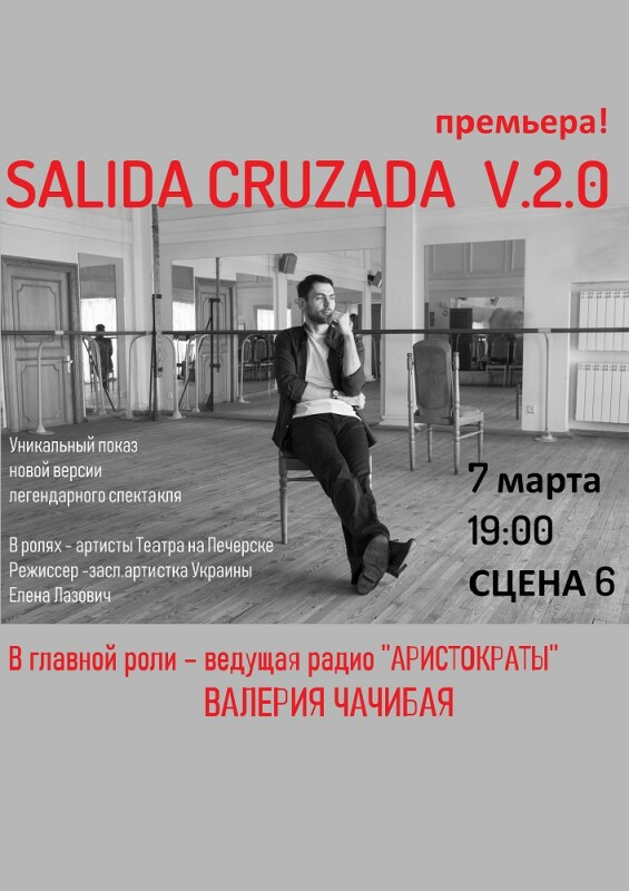 Проект «SALIDA CRUZADA V.2.0» – смелый эксперимент творческой группы под руководством режиссера Елены Лазович, в котором в уже существующий спектакль на главную роль журналистки приглашена ведущая радио «АРИСТОКРАТЫ» Валерия Чачибая.