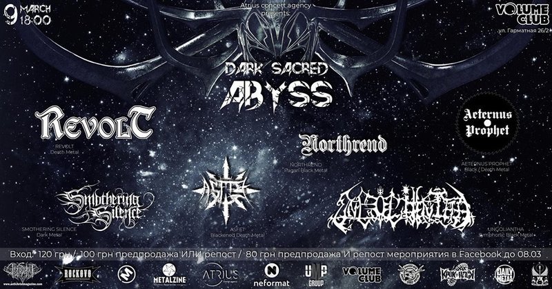 Истинные ценители Black / Death Metal, внимание! Мы приготовили для Вас вечер потусторонней тьмы и бескомпромиссной силы - Dark Sacred Abyss!