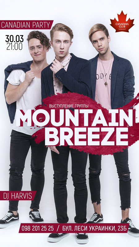 30 марта, приглашаем на эксклюзивное выступление группы Mountain Breeze - участников нацотбора на евровидение 2018 и любимцев всех девушек страны.
