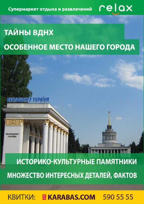 В Голосеевском районе Киева есть любопытнейшее место – огромный экспоцентр ВДНХ, который давно уже стало бессмысленным называть выставкой достижений народного хозяйства, ведь судьба этого центра коренным образом изменилась за последние 25 лет. Сегодня для многих людей ВДНХ – это просто большой парк, выставочный центр или место для отдыха или развлечений. И лишь для некоторых – это великолепный архитектурный музей под открытым небом. Тем не менее, старые тайны ВДНХ остаются для многих не разгаданными, и на экскурсии мы поможем вам научиться их раскрывать, читая рисунки и орнаменты лепки на зданиях, как книгу историй.