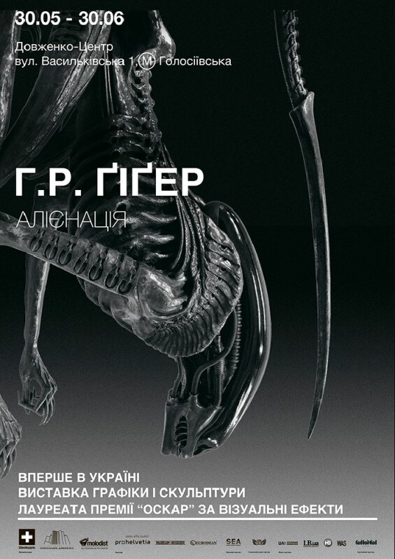 30 травня у Довженко-Центрі за підтримки Посольства Швейцарії та в рамках КМКФ “Молодість” відкриється перша в Україні ретроспективна виставка лауреата премії “Оскар” за найкращі візуальні ефекти, швейцарського художника-сюрреаліста ГАНСА РУДОЛЬФА ҐІҐЕРА (1940-2014).