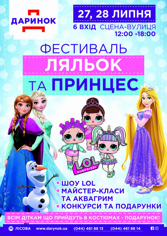 27-28 июля в Маркет молле «Дарынок» пройдет детский «Фестиваль кукол и принцесс», который соберёт под одной крышей любимых героев всех девочек: кукол Лол, принцесс Эльзу и Анну, Лебедь и Аврору, Белоснежку и других.