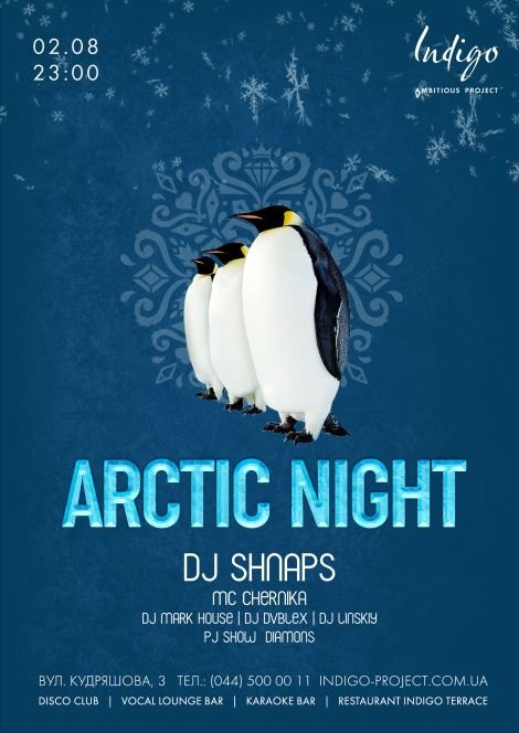 Перегрелся на солнышке? Охолонь, приведи свои чувства на Arctic Night в Indigo с dj Shnaps. Горячие танцы на ледяной пати, почувствуй удовольствие от контрастов, 2 августа в лучшем клубе столицы!