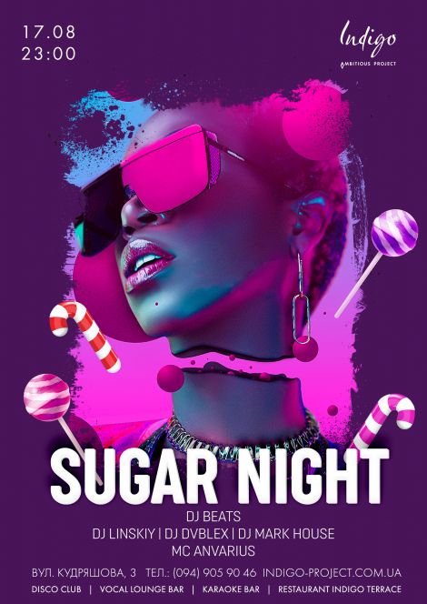 Потряси своей конфеткой на Sugar Night party. в Indigo, за пультом Dj Beats, будет настолько сладко, что сахар к кофе вам не понадобится.
