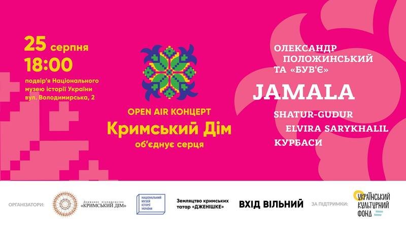 25 серпня, о 18.00 на галявині Національного музею історії України в Києві вдруге відбудеться кримський Open Air концерт «Кримський Дім об’єднує серця», присвячений 28-й річниці Незалежності України.