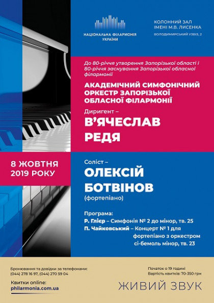 Академический симфонический оркестр Запорожской областной филармонии. Дирижер - ВЯячеслав Редя. Солист - Алексей Ботвинов (фортепиано).