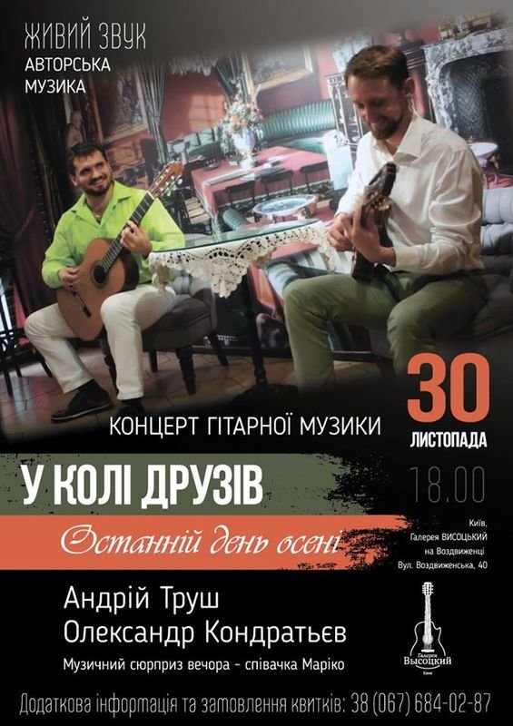 В программе вечера - авторская музыка, гитарная классика и музыкальный сюрприз вечера - певица Марико.
