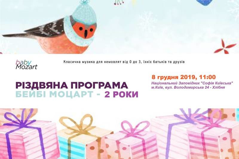 Baby Mozart приглашает на рождественский концерт и празднование своего второго дня рождения! В честь праздника маленький Моцарт вместе с волшебным трио из флейты скрипки и фортепиано отправляется собирать музыкальные подарки, которые приготовили И.С.Бах, В.А.Моцарт, Куринный, Ф.Пуленк, Й.Йохов, Ж. Бизе, В .Гоноболин, Ж.Колодуб, И.Кларк.