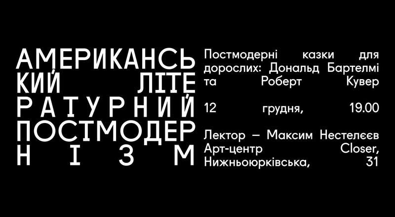 Новый сезон лекций о чтении посвящаем американском постмодернизма, его культовым текстам и интересным представителям от Джона Гоукса, Уильяма Ґеддиса, Джозефа Макэлроя, Джона Барта, Дональда Бартелма к Роберту Кувера, Томаса Пинчона, Дона Делилло и Дэвида Фостера Уоллеса. Поговорим об экспериментальных, интеллектуальные, новаторские тексты современной американской литературы, которые за последние 70 лет коренным образом переосмыслили старые художественные условности и установили новые правила жанровой игры.