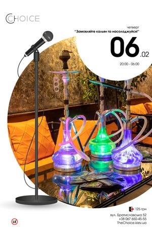 При заказе кальяна до 22:00 (в кальян зале) вход в караоке Choice на 2 человека будет бесплатным. Все, что вам нужно, это заказать минимум один кальян и успеть воспользоваться бесплатным входом в караоке зал. Можете бронировать столик заранее – на ваше усмотрение.