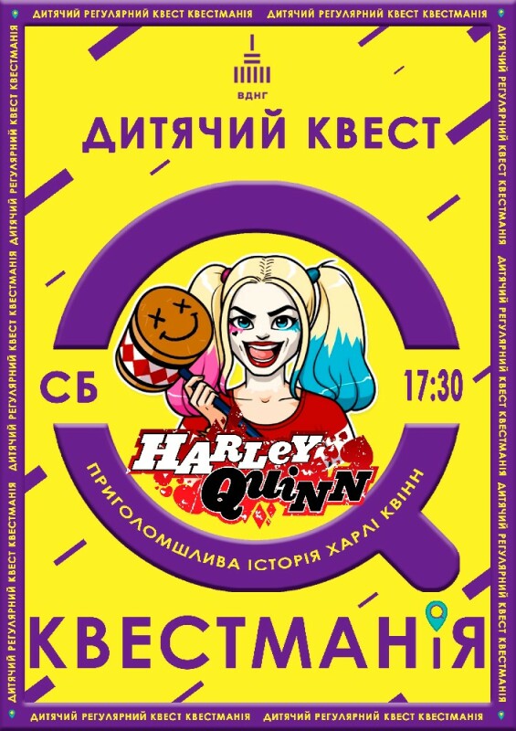 Регулярно-відкритий квест "Приголомшлива історія Харлі Квінн" для детей на природі по территории ВДНГ?