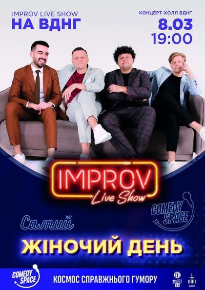 Improv Live Show создано авторами и актерами известных телевизионных проектов: Вечерний Киев, Лига Смеха, Рассмеши Комика, “Женский Квартал” (Роман Мищеряков, Валик Михиенко, Вова Шумко, Костя Трембовецкий).