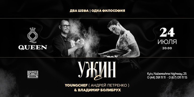 24 июля на террасе Queen, пройдет ужин от YoungChef (Андрей Петренко) и шеф-повара Владимира Болибруха.