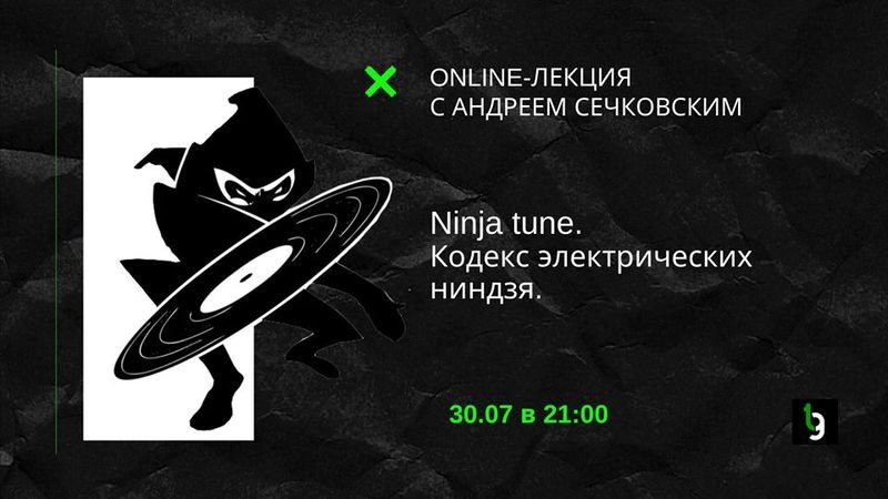 30 июля в 21:00 лекция Андрея Сечковского о легендарном британском лейбле Ninja Tune: