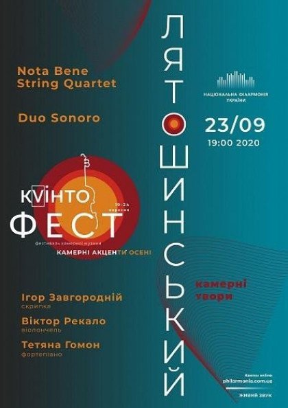 В рамках фестиваля камерной музыки «КVИНТОФест», будет звучать музыка Бориса Лятошинского, созданная им от модерных 1920-х и до последних лет его жизни.