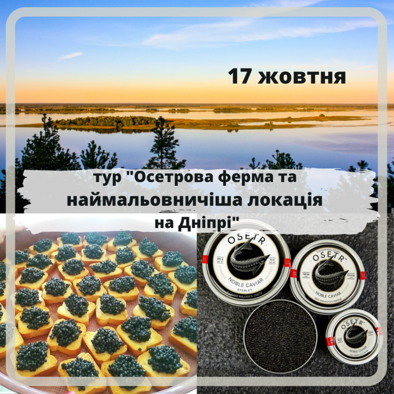 Нас ждет Осетровая ферма с дегустацией черной икры и прогулка по самой живописной локации на Днепре.