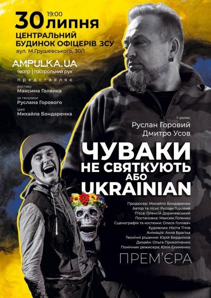Первое представление о войне на Донбассе. Но в центре сюжета не сама война, а жизнь одного украинца. Ukrainian - это взрыв в театральной жизни Украины! Честное, откровенное до боли, порой смешное, а иногда трагическое до слез - это представление затронет каждого. Потому что она о нас, украинцах, и нашем времеми - трагическом, противоречивом, историческом.