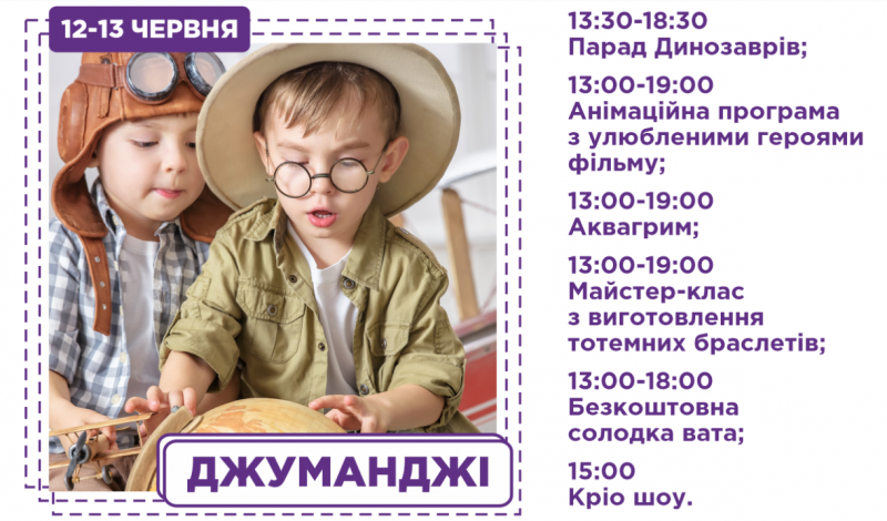 В эти выходные увлекательная анимационная программа с яркими персонажами Джуманджи состоится с 13:00 до 19:00 на главной сцене маркет-молла.