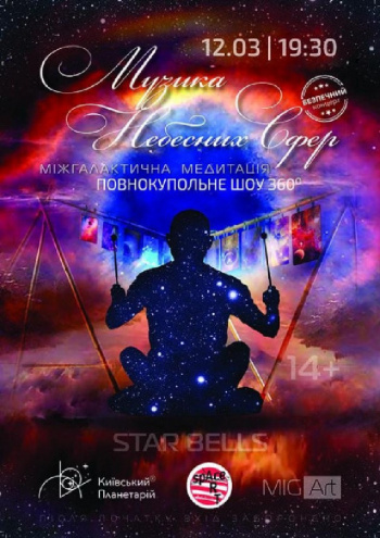 Начинать наш концерт будут тибетские колокольчики. А потом уже прозвучат космические колокола, которые будут задавать темп и ритм нашего межгалактического полета. Эта небесная музыка в синтезе с полнокупольное проекциями 360 ْ приведут к ощущению единства, космического сознания - первичного состояния свитоутворення, что в свою очередь приводит к душевному спокойствию каждого человека.