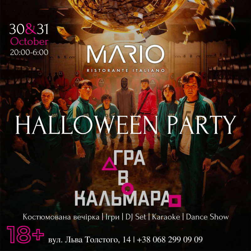 Приглашаем Вас на самые страшные две ночи в нашем городе!Хелуин - время проверить себя и свои способности!Предлагаем Вам оказаться в культовой ленте «ИГРА В кальмар».Каждому участнику будет присвоен номер