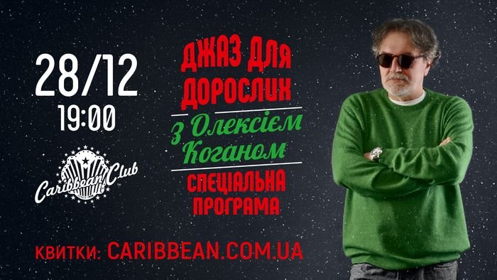 Зимнее джазовое событие «Джаз для взрослых с Алексеем Коганом» в Caribbean Club Concert Hall!эксклюзивная зимняя программаабсолютно новые песни в репертуареневыдуманные джазовые истории от Алексея Коганакамерная атмосфера и уют любимого Caribbean Club«В событии примут участие два специальных гостя – Константин Горячий и Александр Лебеденко. Мы готовим новую программу и постараемся сделать ее максимально интересной. Будут ли сюрпризы, спросите вы? Безусловно! Какие? Приходите и сами все увидите и услышите!», — рассказал Алексей Коган о предстоящем вечере.Гости вечера узнают от Алексея Когана истории создания легендарных джазовых композиций: интересные факты и воспоминания об их создателях, случаи из жизни джазменов и целых джаз-бэндов.