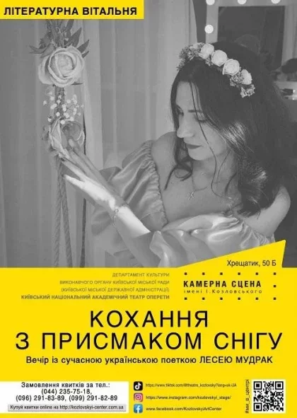 В Литературной гостиной выступит одна из самых популярных современных поэтов, яркая и незаурядная Леся Мудрак. Её слово воспламеняет, поэтические перформансы шокируют, гражданская позиция заставляет уважать эту неповторимую личность, а шарм и женственность влюбляет с первого взгляда.