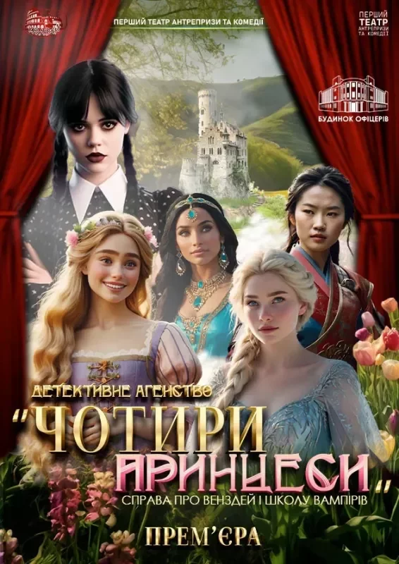 Всі чарівні казки закінчуються однаково, – «І жили вони довго і щасливо…» Та що робити, коли серце просить пригод, а розум важких карколомних завдань? Тим більше, у далеких казкових королівствах завжди повно страшних таємниць та жахливих секретів! От і вирішили героїні чотирьох казок – мудра та розважлива Жасмін, спритна та кмітлива Рапунцель, відчайдушно смілива Мулан і холоднокровна розсудлива Ельза створити власне детективне агентство, яке так і назвали – «Чотири Принцеси». І перша справа виявилась дійсно дуже загадковою – адже за допомогою звернулась ніхто інша, як Венздей, похмура дівчинка з ексцентричної родини Адамсів, котра попросила принцес-детективів розплутати клубок містичних злочинів, що кояться у школі вампірів.