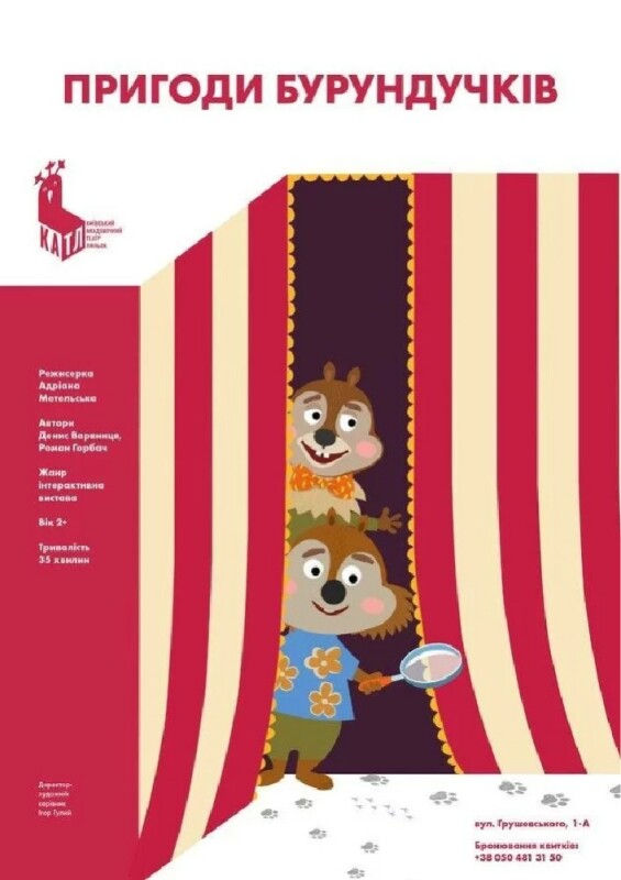 "Пригоди Бурундучків" – весела інтерактивна вистава для дітей від 2+ років. Наші герої – веселі бурундучки Чіпко і Дейлик – разом із маленькими глядачами мають знайти і розчаклувати циркових тваринок, яких випадково перетворила на людей маленька фея. А заразом дізнатися про те, що кожній тварині (і людині) потрібні увага, любов і турбота, інакше вона дуже засумує. Цю виставу для малюків ми граємо в нашому укритті, безпечному і облаштованому всім необхідним. Навіть на випадок блекауту нам допоможе маленький генератор. Тож всі вистави обов'язково відбудуться.